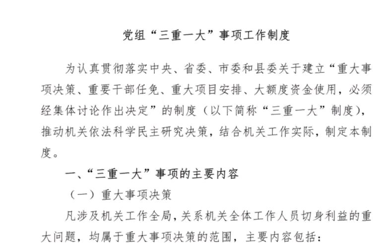 党组“三重一大”事项工作制度