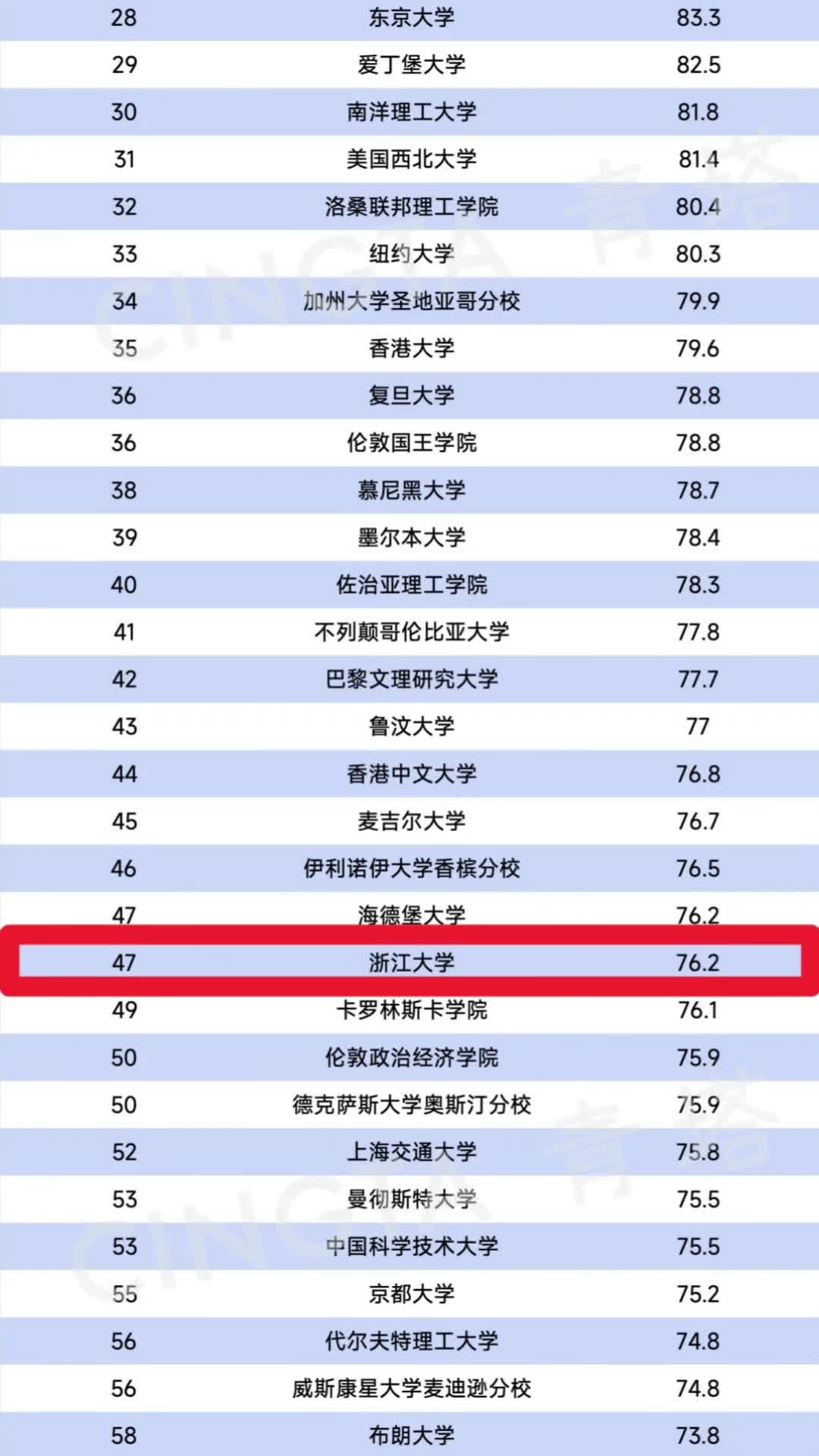 浙江大学由去年的55位,跃升8位,排名47,进入全球大学50强!#浙江大学 #浙大 #泰晤士