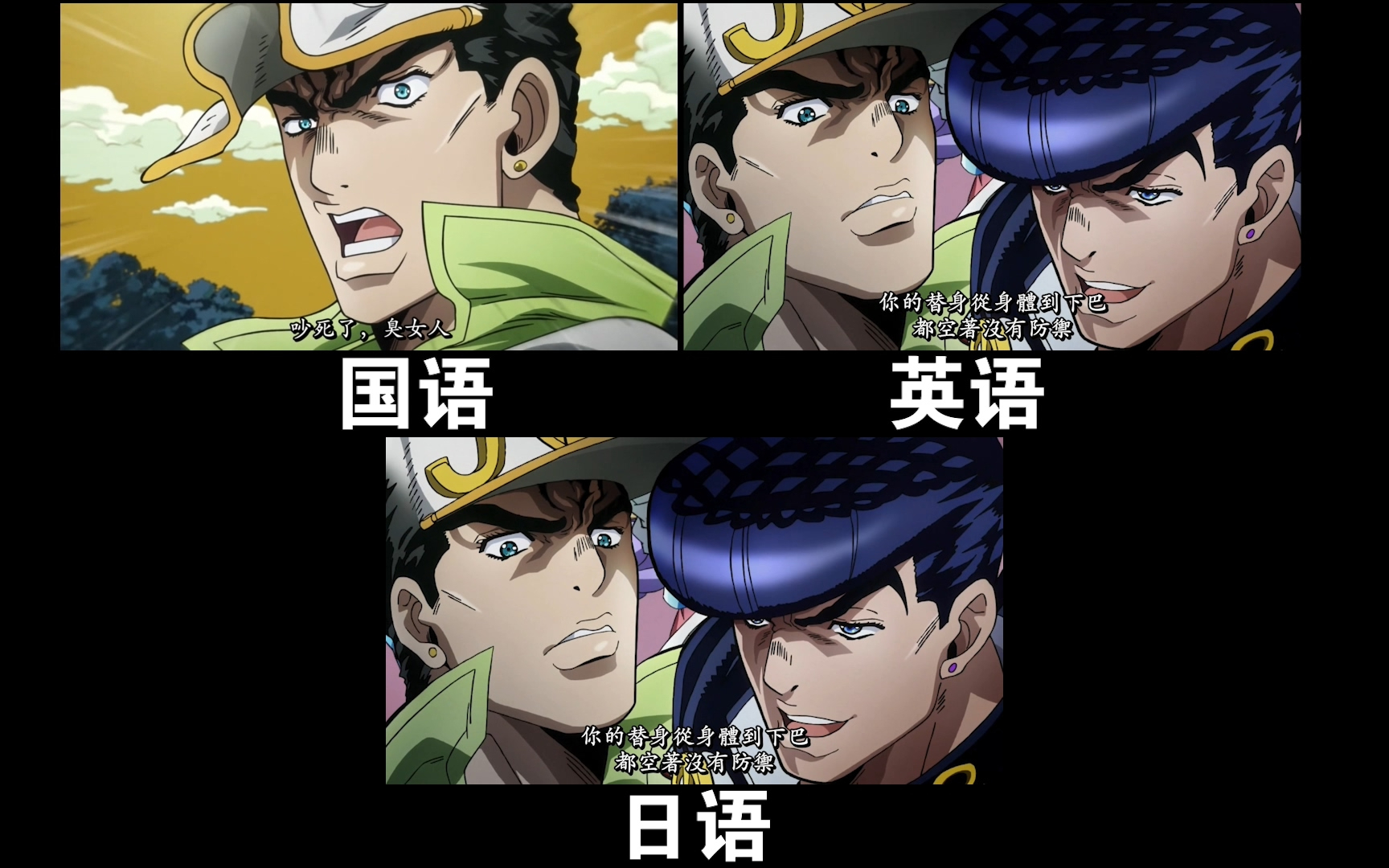 【JOJO】承太郎与仗助初次交手和呀卡吗洗! 不同语言对比