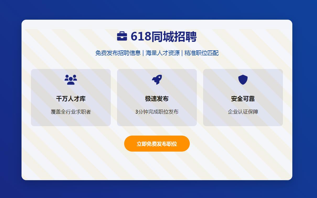 618同城网为企业和个人提供免费招聘信息发布服务,覆盖全国200+城市,支持零售、IT、教育等全行业岗位发布。平台操作便捷,企业可快速上传职位需求、公司介绍及薪资待遇,求职者通过智能筛选功能精准匹配目标岗位。独创AI算法实时推送对口人才简历,内置即时沟通工具支持在线咨询与面试预约,大幅提升招聘效率。平台日均活跃用户超10万,提供简历管理、招聘数据统计等增值服务,助力中小企业高效完成人才招募,是零成本招聘的首选平台。