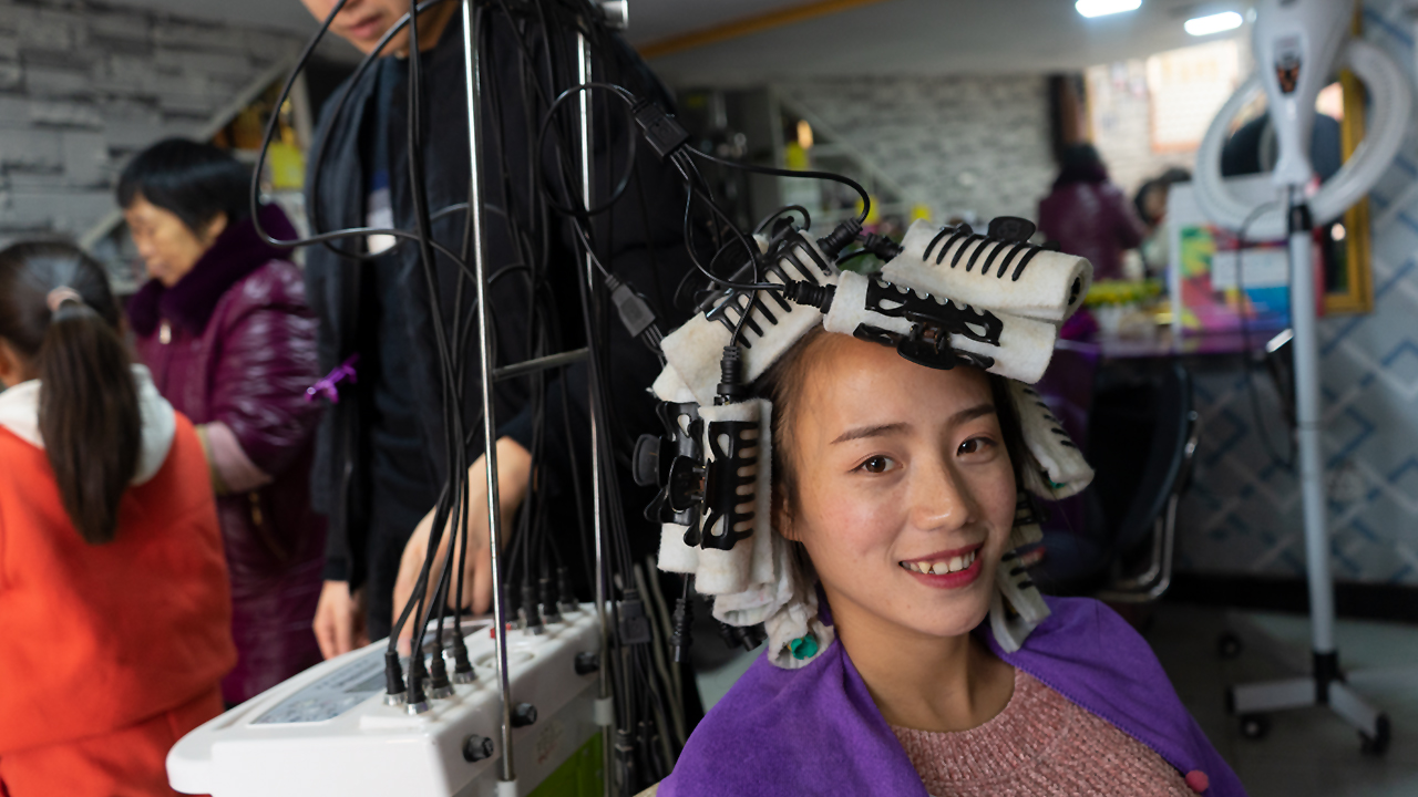农村小妹也赶时髦,去理发店烫个卷发,连自己都不认识了
