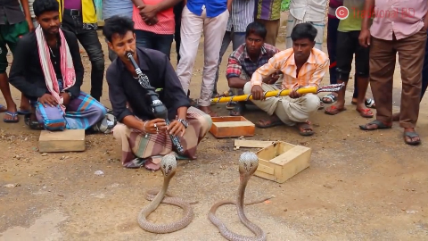 【印度眼镜蛇】实拍印度阿三吹笛控制眼镜蛇跳舞